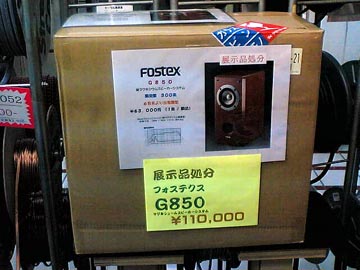 | キムラ無線。フォステクスのマグネシウムフルレンジユニット使用スピーカーG850が1セット残っていた。今夏、予約分で完売した同機だが、これはキムラ無線に展示されていた展示機体だ。稀少品なので、売り切れで諦めていた人は急げ!どこを探しても、もう同機は売ってないのだから。