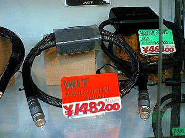 | MITのデジタルケーブル。店頭システムでのエージングが済み、ショーウインドウに飾られている。もちろん、試聴を希望すれば、店頭での即時試聴、もしくは試聴貸し出しにも対応してくれる。