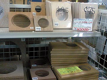 | コイズミ無線にはこのような穴空き済み板材も売られている。様々な口径のものが売られている。地方のオーディオマニアが自作スピーカーを製作するとき、板材のカットをホームセンターに依頼する場合もあるだろう。ただ、ホームセンターなどでは直線カットのみで、穴開け加工まで対応してくれるホームセンターは少ない。丸穴開けが自作スピーカーにおけるネックだと思うが、フロントだけこの板を使えば、穴開けの問題は解消される。 | ||||||||||||||||||||||||||||||||||||||||||||||||||||||||||||||||