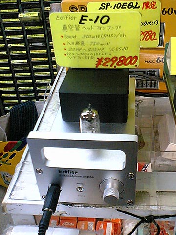 かわいらしいヘッドホンアンプが入荷。EdifierのE-10という製品で、ご覧の通り真空管が使われている。 |