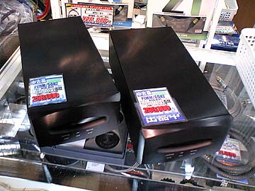 この日も同店には色々と名機が見受けられたのだが、ちょっとだけご紹介。右はパイオニアのパワーアンプM-22。ヤフオクでは比較的頻繁に見受けられるアンプだが、中古店ではあまり見かけない。中古価格39,800円は、同機のヤフオク落札価格と同等。20年以上も前の古いアンプだが、SPターミナルや入力端子が前側上面に設けられたり、トランスやヒートシンクがむき出しに配置されていたりと、独特の外見が目を惹く。今見ても斬新なデザインだ。 |