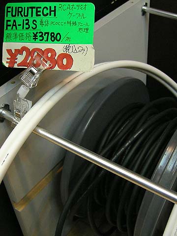 右はフルテックの切り売りラインケーブルFA-13S。3年前に発売され、発売当初はそれなりの話題になったと言うケーブルらしいが、私は同ケーブルの存在を初めて知った。3年前に入荷したものの売れ残りらしい。導体はPCOCC単線で、2芯シールド構造を有している。導体が単線なので、ケーブルを曲げると、曲げた形状を維持する。 |