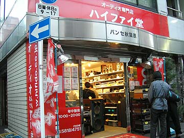 | ハイファイ堂秋葉原店。旧アバック本店の斜め向かいにある。ハイファイ堂は全国に3店舗ある。扱い品は全て中古品で、かなりのビンテージ級オーディオ機器から、普通のオーディオ中古品まで多彩に取り揃えているが、同系列店が強いのは、ビンテージクラスの名機だ。同店を含め同系列店の中古情報は、ほぼ全てホームページ上で確認出来る。ハイファイ堂のホームページのえらいところは、中古情報を全て写真入りで紹介しているところだ。しかも、過去の(売れてしまった)中古機器の情報も過去情報データベースで検索することができる。この過去情報データベースは一種のオーディオ機器辞典のようなもので、私もオーディオ機器の発売年や発売当時の価格やスペックや中古価格を調べる際によく利用させてもらっている。