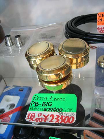 | こちら、新宿のオーディオユニオンセカンドハンズ。ローゼンクランツのPB-JRMk2が入荷。ただし、この写真はすでに1ヶ月以上前に撮影したので、もう売れているはずだ。定価3個セット21000円が中古14800円。ローゼンクランツの上級クラスインシュレーターは、値段が高い上に、でかい。使いやすいのは、このPB-JRあたりの大きさのインシュレーターだろうな。 | |||||||||||||||||||||||||||||||||||||||||||||||||||||||||||||||