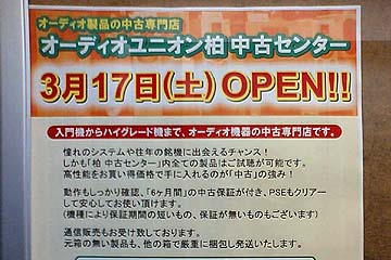 | オーディオユニオンお茶の水店内に貼られていた案内。オーディオユニオン柏店がオーディオユニオン柏中古センターと名称変更したそうな。中古に特化するということか。