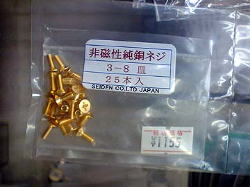 | ラジオ会館4階の若松通商秋葉原駅前店。金メッキ非磁性純銅ネジが入荷。M3で長さは8mmだ。M3ネジはオーディオにも多用されているので、使い道は色々ありそうだ。ただ、銅は柔らかいので、強く締め過ぎると、通常のネジよりネジ山が潰れやすいだろうから、その点は気を付けた方がいいだろう。右はUSBオーディオインターフェースキットWUAIF01。5980円。パソコンからのUSBオーディオ信号を光デジタル/アナログRCA/ヘッドフォン出力に変換するためのキットだ。 | |||||||||||||||||||||||||||||||||||||||||||||||||||||||||||||||