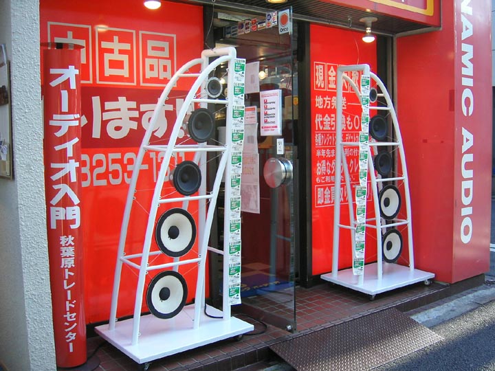 | ダイナミックオーディオ秋葉原トレードセンターの表玄関に上写真のようなスピーカーユニットを用いたモニュメントが登場。もちろん飾りなので音は出ない。これで音が出たら面白いなぁ。玄関左側に「オーディオ入門」と書いてあるのが、なんとも微妙である。 | |||||||||||||||||||||||||||||||||||||||||||||||||||||||||||||||