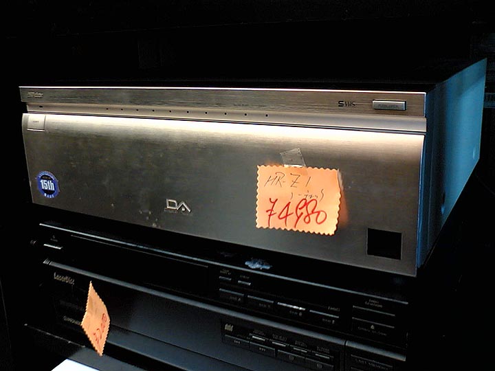 | 上写真はダイナ植木店に入荷したビクターのS-VHSビデオデッキHR-Z1。1991年発売の高級S-VHSデッキで、定価は30万円だったと思う。洗練されたデザインは、いまみても美しい。ま、そっけないという言い方もできるが。それがまぁ、こんなお値段になっているのだから、VHSも終焉に近い。 | |||||||||||||||||||||||||||||||||||||||||||||||||||||||||||||||