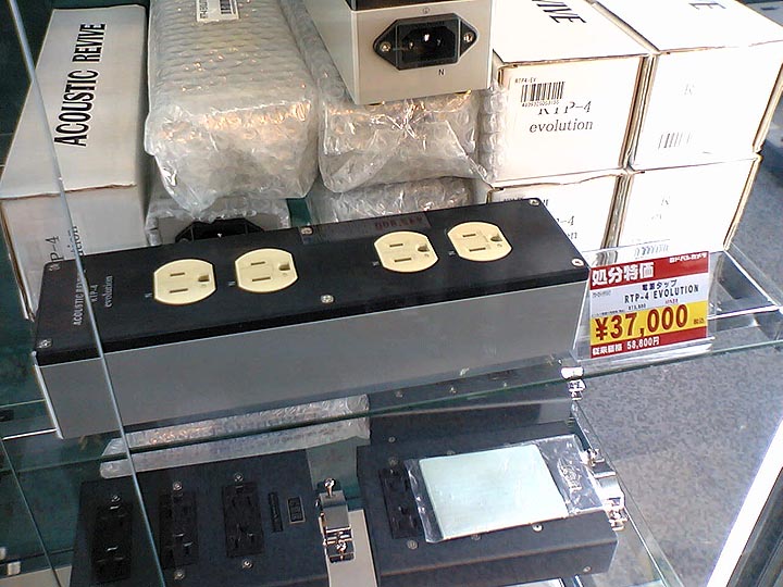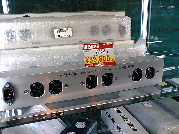 | ヨドバシカメラの大特価セール発見!!アコースティックリバイブのRTP-4eが37000円!定価のほぼ半値。さぁ、これはもうホントお買い得だった!もう無いけどね。 上記写真のように、撮影時点(連休中)では11個在庫があった。私も買うつもりだった。けど、その後、一挙に売れたらしい。で、私が買いにいった先週末時点では、全部売れてしまっていた。残念!残っていれば、記念に1台買うつもりだったのだが。 何が記念って、RTP-4e(RTP-6eも)が生産中止になったからだ。すでに雑誌でも発表されている事だから、知っている人も多いだろうが、アコリバは今後電源ボックスを造らないそうだ。理由は、金属価格の高騰により、採算が合わなくなったというもの。非常に評価の高い製品だっただけに、残念である。店員さんに聞いたところ、1人で何台も買っていく人もいたとか。まぁ、いくら処分特価といっても、普通のオーディオ店では、こんな仕入れ値みたいな価格では売らんぜよ。大型量販店ならではの、大雑把さというか、大胆さというべきか。 |