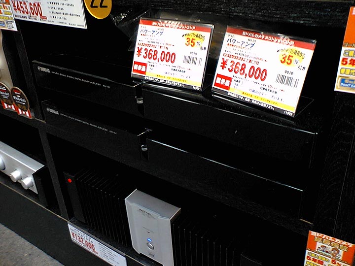 | ヤマハのMX-D1が処分特価368,000円。(定価63万円)ソニーのTA-DR1と同時期に発売されたD級ステレオパワーアンプで、デジタルアンプの本格到来を感じさせた製品だった。MX-D1は、しばらくの間、マニア向けピュアオーディオ機器がごぶさただったヤマハが突如として発売したアンプだった。無論、同社技術陣がD級アンプに関する技術開発を重ねた結果、このアンプが生まれたという背景がある。 MX-D1は、艶有り黒に塗装され、デザインも独特だった。独特だったがゆえに、このデザインは好き嫌いがはっきりしそうだ。そうそう、MX-D1との組み合わせを想定して同時発売されたパッシブコントローラーYPC-1も独特の存在感だった。ただ、YPC-1は商売的にはうまく行かなかったようだ。私の推測するに、MX-D1は、同社のデジタルアンプ技術をハイエンド製品として昇華させたらどうなるかという、一種の実験的な要素が大きかったのではないかと推察する。 |