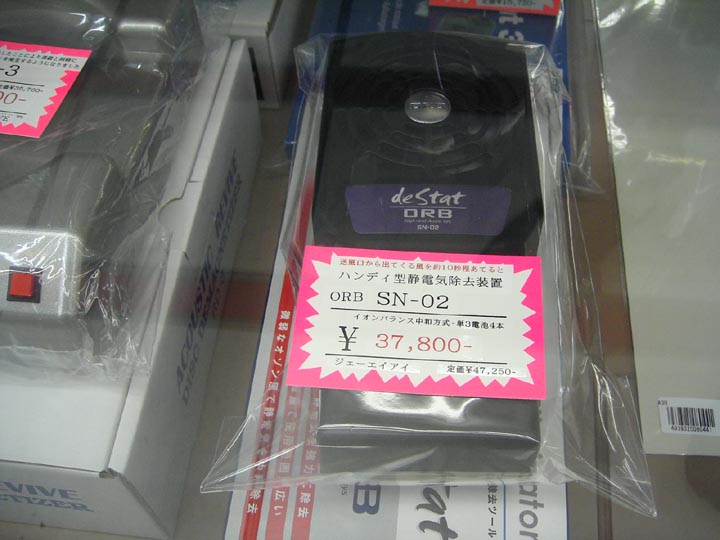 ORBのハンディ型静電気除去装置SN-02が入荷。37800円。これもみじんこの注目アクセサリー。以前、同様の、静電気除去装置を試させてもらったことがあり、その音質向上効果にはびっくりした。CDディスクにプラスマイナスのイオンを含む風を吹き付けると、音が明瞭になり、音場感も劇的に改善される。いままでのディスクが、静電気で汚されていたのかを実感。しかしながら、従来装置(SN-01)は実売10万円程度と高価。これでは手が出せなかった。けど、今回発売されたSN-02なら買えそうだ。また、従来装置は据え置き型だったが、今回の装置はハンディ型なので、扱いやすさもアップ。