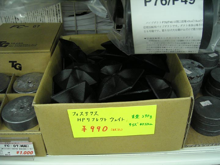 フォステクスの鋳鉄製HPリフレクトウエイト。カタログにも載っていない珍品。これは通常、G1300専用スタンドの裏面に搭載されている、防振用のウエイトだ。昨年も少量入荷していたが、この度も少量入荷。このように、断続的にコイズミ無線に入荷している。値段も安いので、欲しい方は早めに確保しておくことをお勧めする。使い方としては、例えば、エンクロージュア内部にねじ止め固定し、防振を図るとか、天板に載せて防振を図るとか、インシュレーターとして機器の足代わりに使うとか、いろいろありそう。