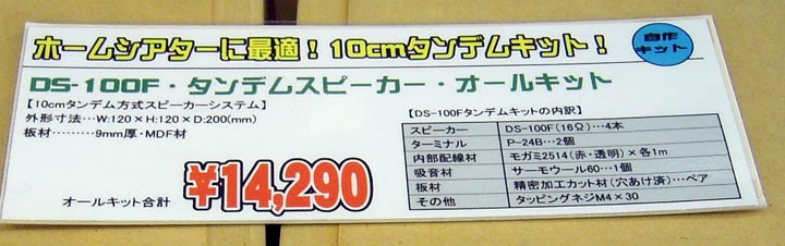 DS-100Fタンデムスピーカーオールキットの値札。価格はペアだ。